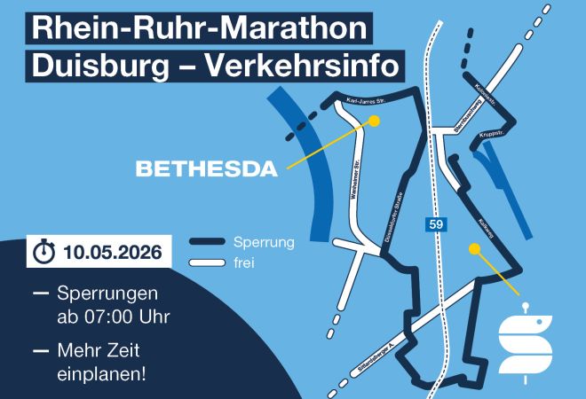 Am 10.05.2026 findet der 43. schauinsland-reisen Rhein-Ruhr-Marathon in Duisburg statt – mit Auswirkungen auf den Verkehr im gesamten Stadtgebiet.